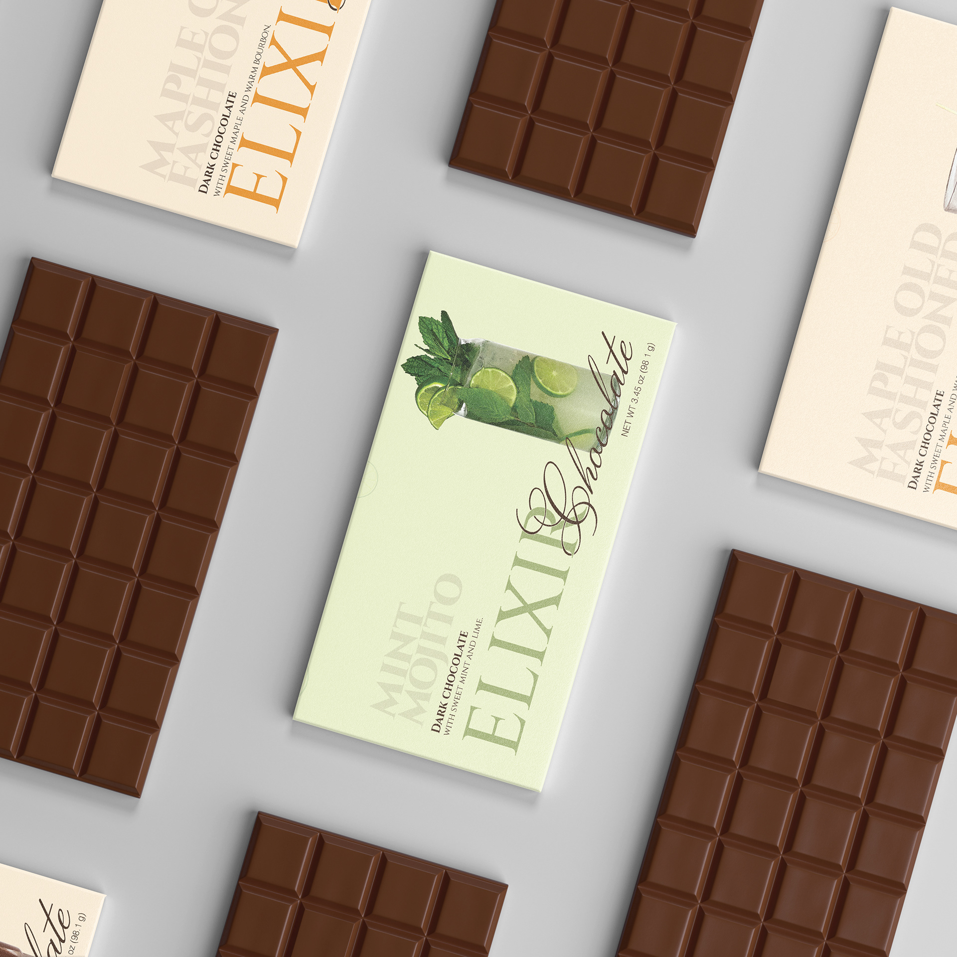 A blend of the elegance of classic cocktails with the richness of chocolate, carefully captured to evoke indulgence. Through a refined color palette, photography and carefully crafted typography Elixir Chocolate depicts luxury and sophistication.