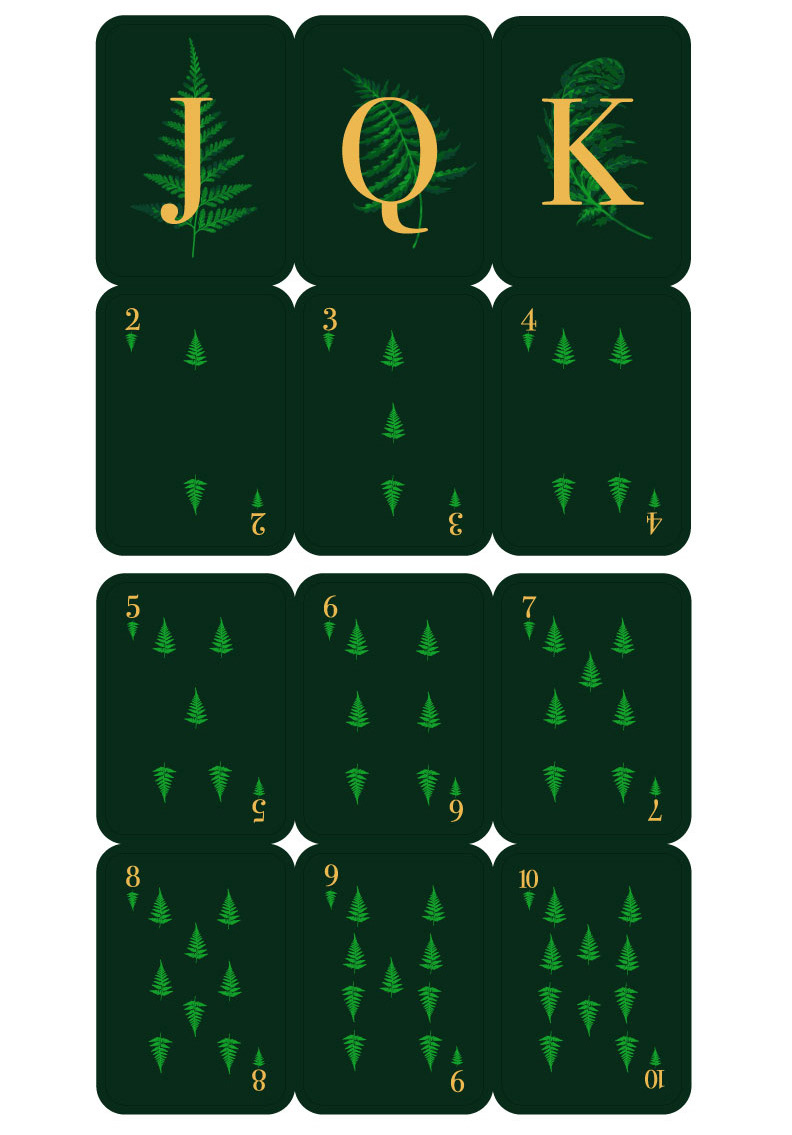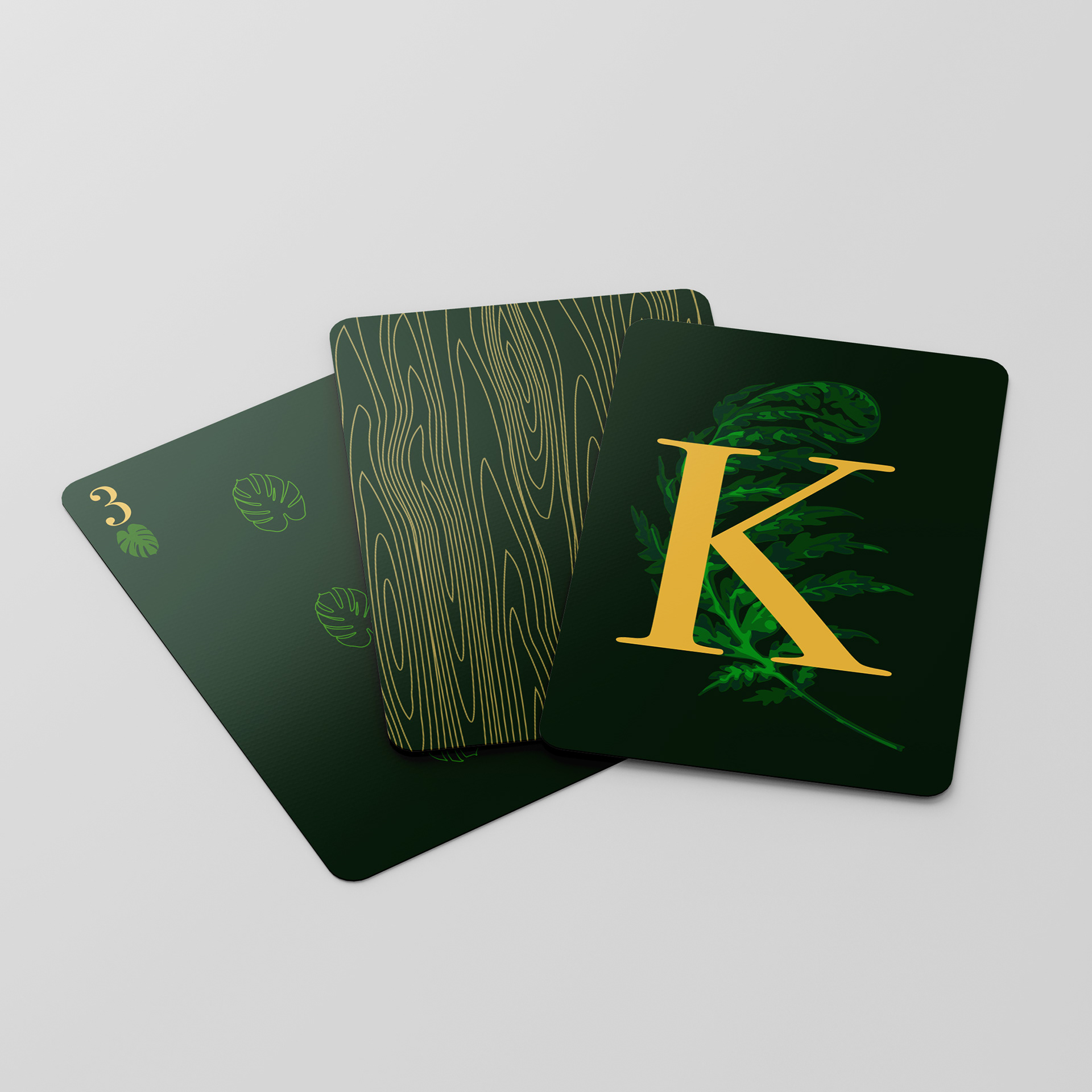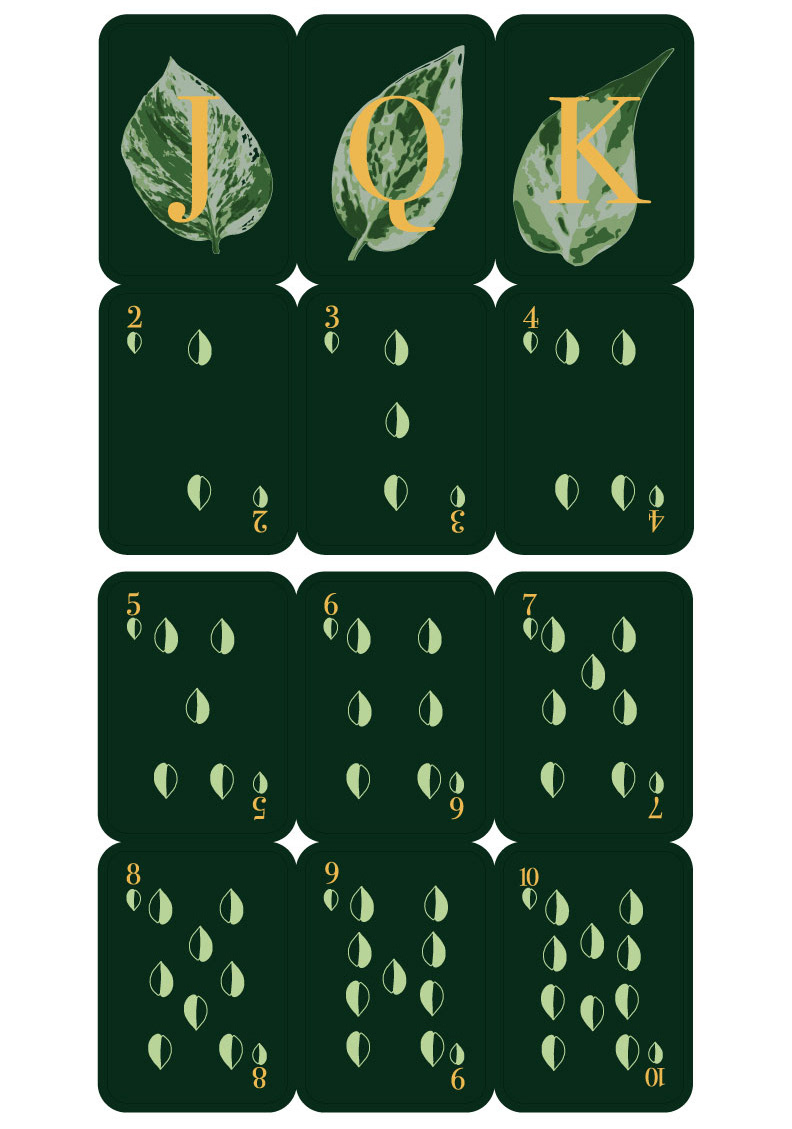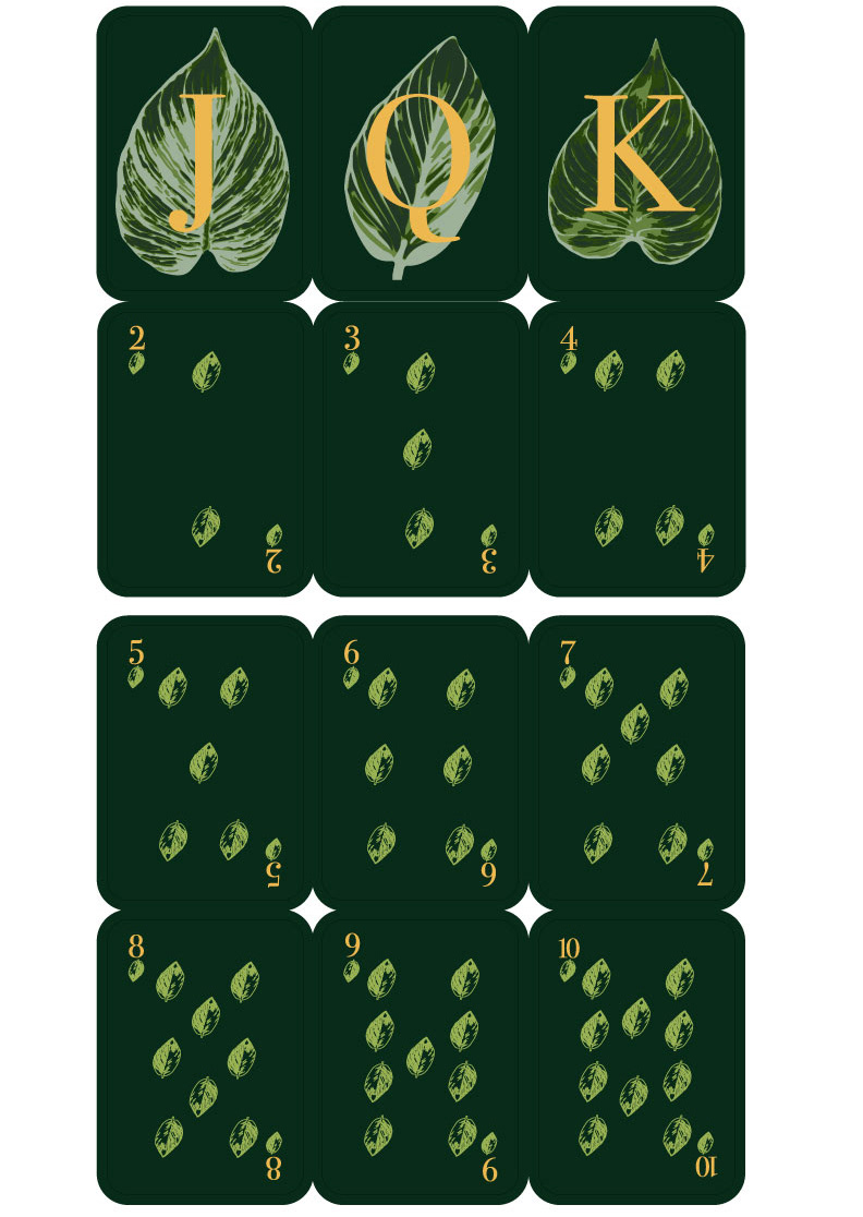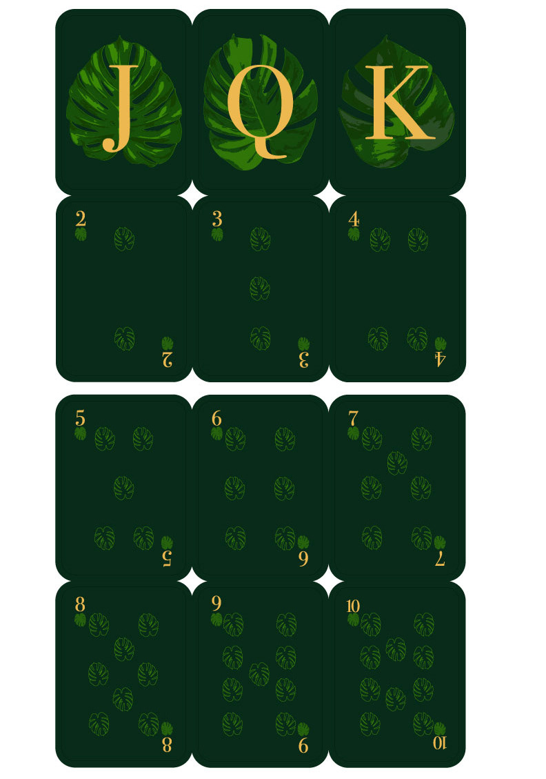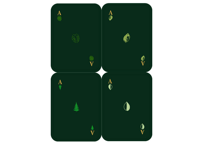 A cohesive design through texture and color carried throughout the suits and box of a deck of cards.