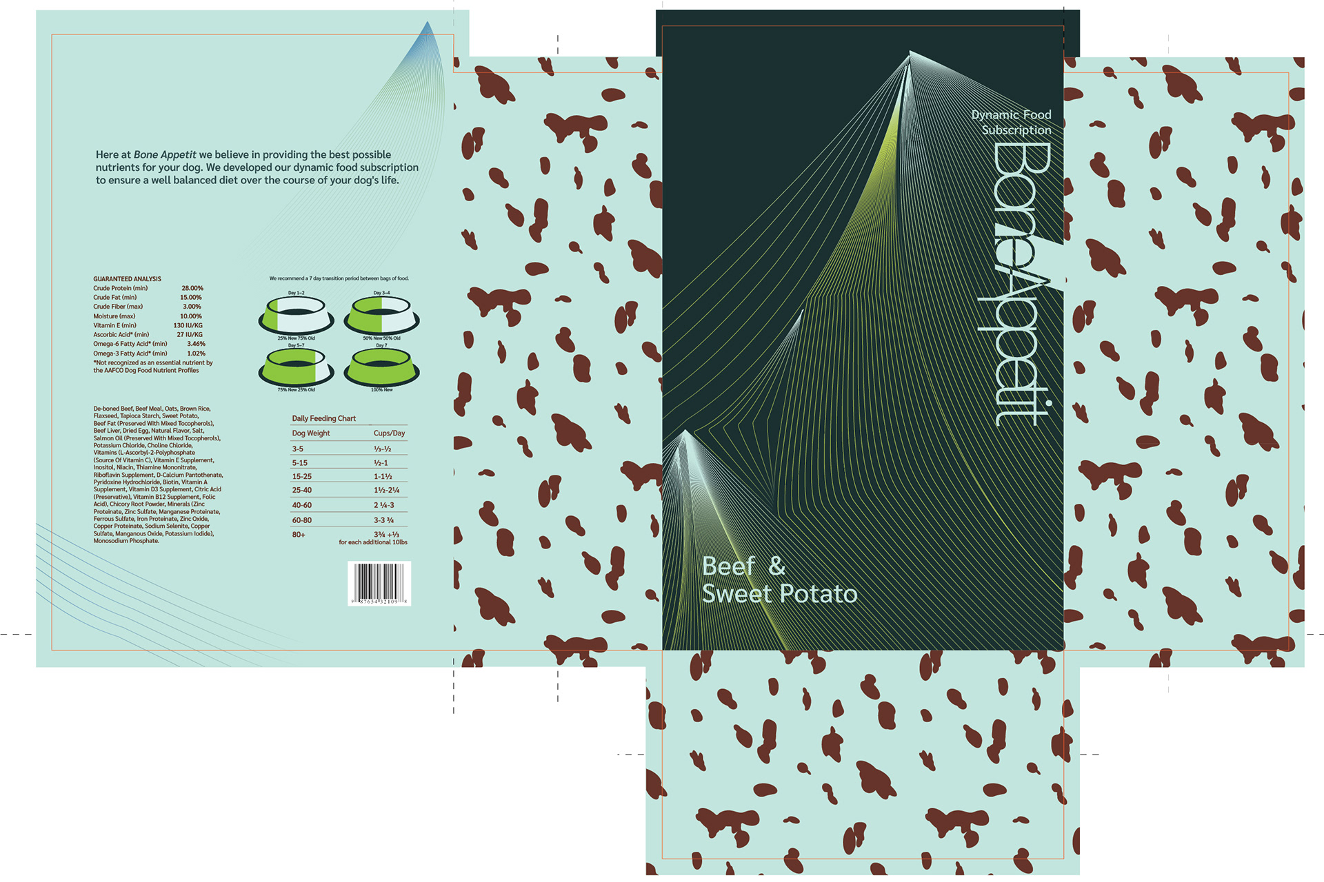 A subscription dog food company aiming to help dog owners ensure a complete and balanced diet, without changing food to0 drastically, negatively impacting dietary health.